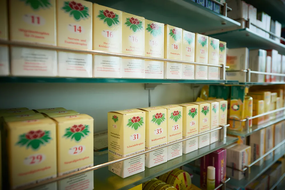 Besonders stolz sind wir auf die Kosmetika und Gesundheitsprodukte unserer Eigenmarke. Auf Grundlage von über 300 Granulaten stellen wir Heilmittel aus dem Spektrum der Traditionellen Chinesischen Medizin (TCM) nach individueller Rezeptur her. Selbstverständlich informieren wir Sie bei einem ausführlichen Beratungsgespräch in unserer Apotheke über alle Einzelheiten der Erzeugnisse.